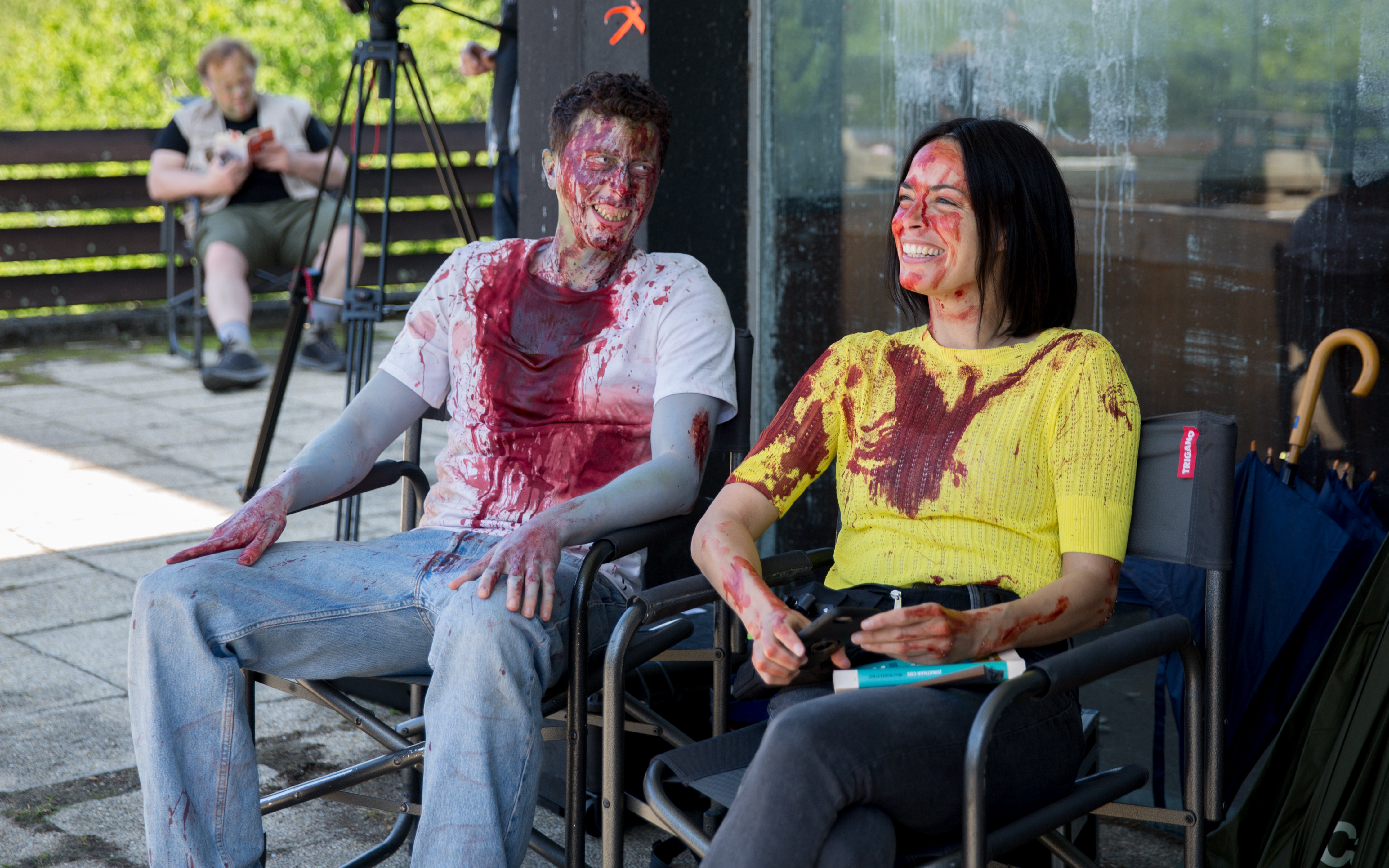 Kuvauksista on kuitenkin leikki kaukana, kun projekti alkaa luisumaan liian vakavaan suuntaan. Onko lattialle lentävä irrallinen käsi oikea, ja kuinka tärkeä on katolle verellä maalattu pentagrammi? Kaiken lisäksi zombeja näyttelevä porukka alkaa vaikuttaa liian uskottavalta. Kenellä viiraa päässä, kuka on oikea zombi – ja kuka saa kirveestä päähänsä?