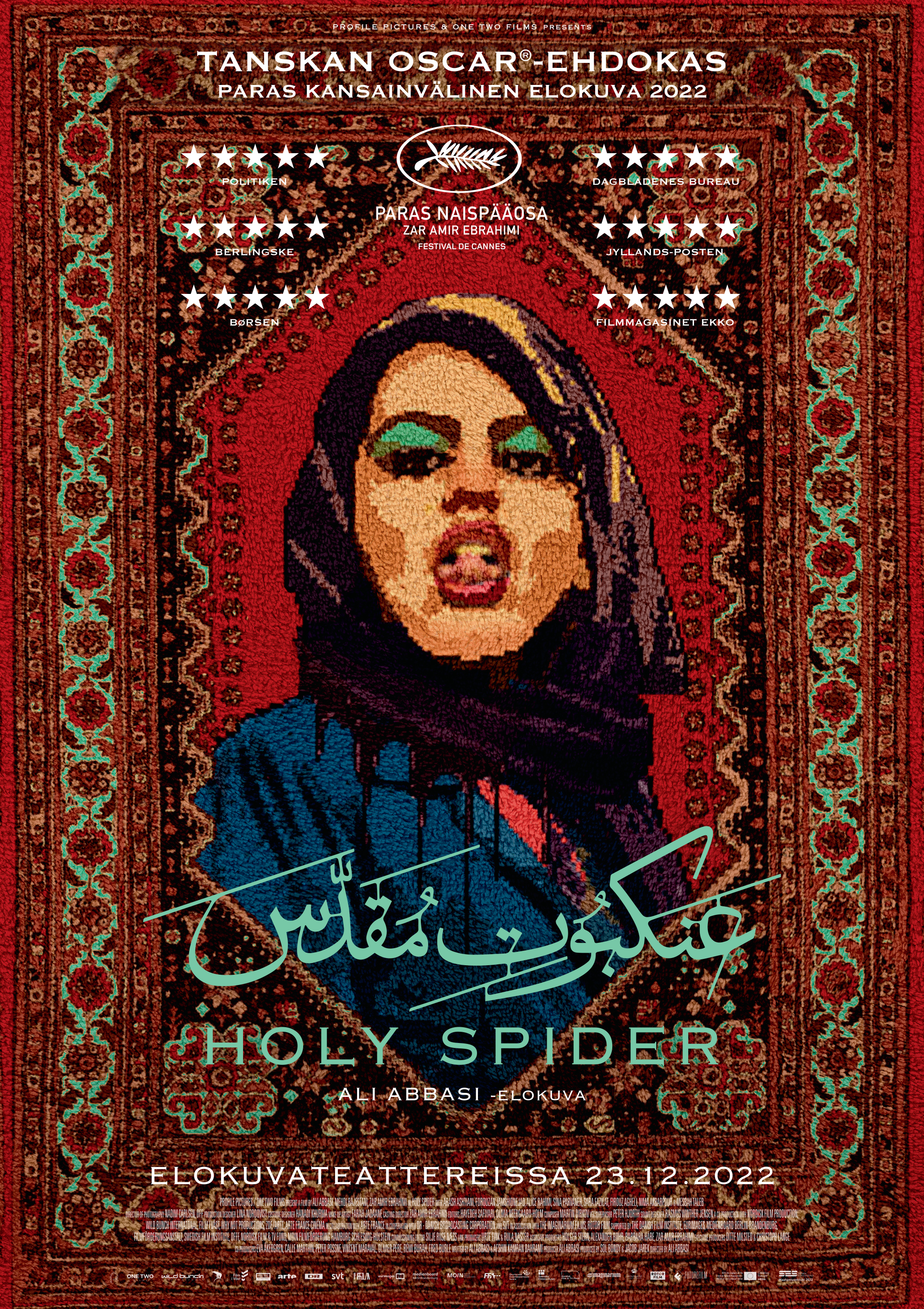 Elokuvastaan Raja (Gräns) lukuisia palkintoja keränneen Ali Abbasin uusi elokuva Holy Spider pohjautuu tositarinaan Iranin pyhässä kaupungissa Mašhadissa 2000-luvun alussa tehdyistä seksityöläisten murhista. Sankarina itseään pitävä murhaaja ajatteli suorittavansa Jumalalta saamaansa tehtävää. Häntä tutkivaa toimittajaa esittävä Zar Amir Ebrahimi palkittiin parhaan naisnäyttelijän palkinnolla Cannesin elokuvajuhlilla.