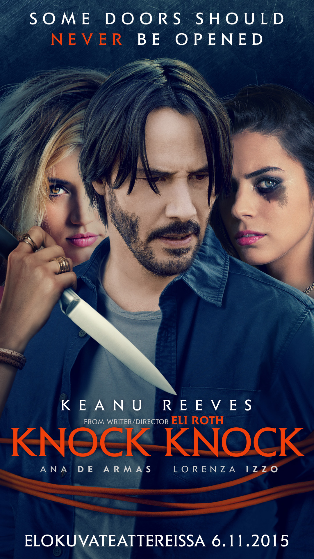 Knock Knockin on ohjannut ja käsikirjoittanut David Lynchin suojattina ja kauhugenren monipuolisena superlahjakkuutena tunnettu ohjaaja-tuottaja-käsikirjoittaja-näyttelijä Eli Roth (näyttelijänä mm. elokuvissa Piranha 3D, Clown, Aftershock). Seksikkään kauhutrillerin päärooleissa nähdään Keanu Reeves, Lorenza Izzo ja Ana de Armas.
