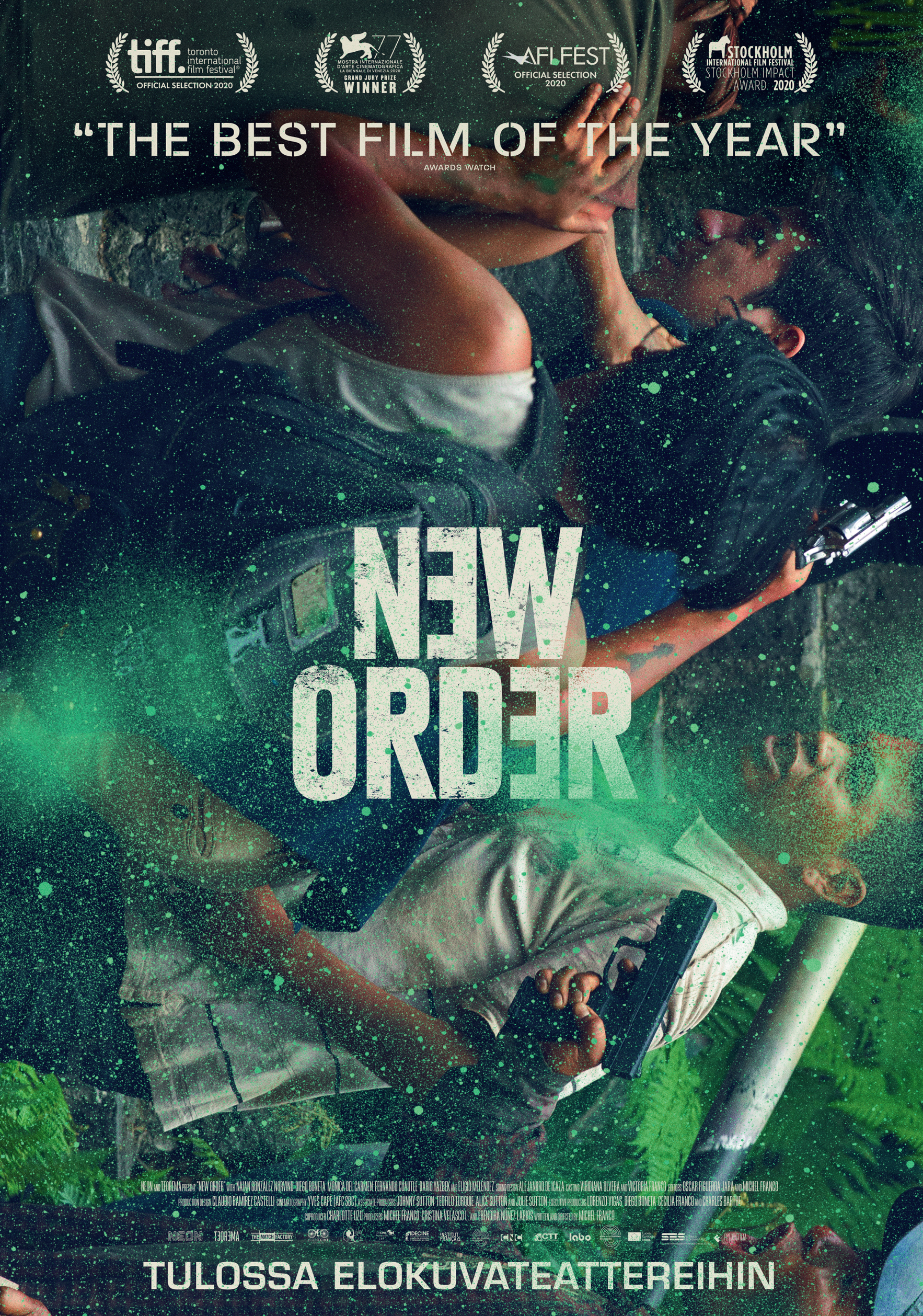 Michel Francon (Meksiko, 1979) New Order (Nuevo orden) on voittanut muun muassa juryn erikoispalkinnon Venetsian elokuvafestivaalilla, ja Tukholman elokuvajuhlilla se palkittiin Impact Awardilla ”aikamme ilmiöitä luotaavasta visionäärisyydestään”.