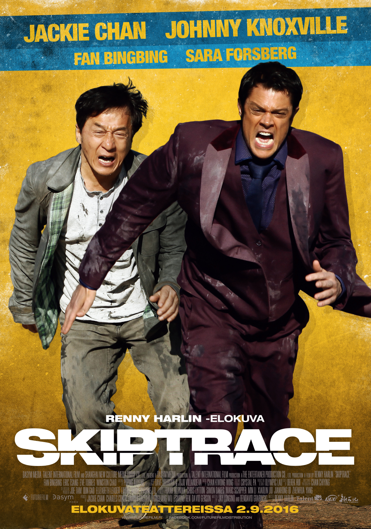 Renny Harlinin ohjaama Skiptrace on kiinalais-hongkongilais-yhdysvaltalainen toimintakomedia. Elokuvan päärooleissa nähdään Jackie Chan ja Johnny Knoxville. Harlinin ohella elokuvaan tuo suomalaisväriä Johnny Knoxvillen tyttöystävänä elokuvassa nähtävä Sara Forsberg.