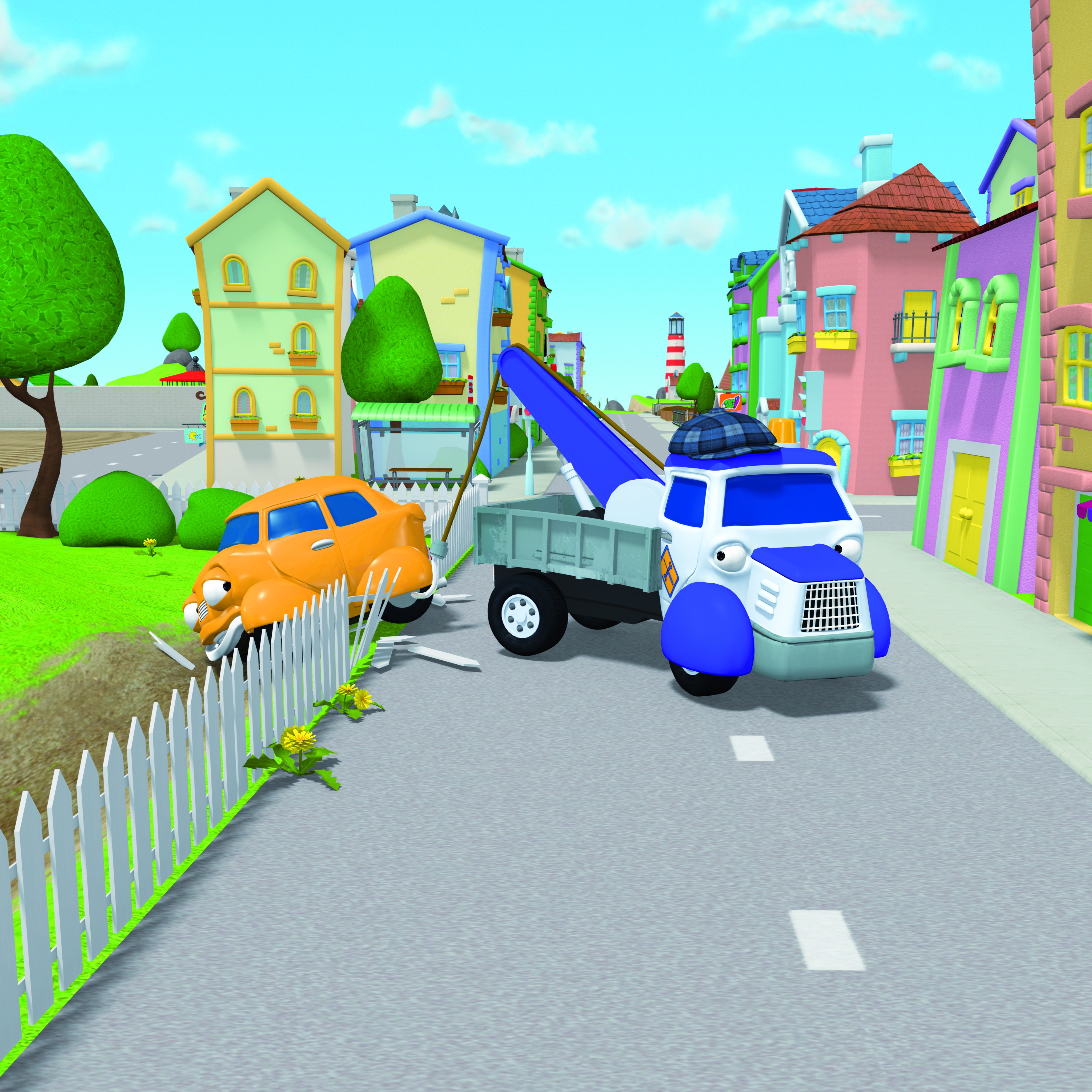 Pauli Poliisiauto ja Bella Paloauto auttavat kaupunkilaisia löytämään varkaita, sammuttamaan tulipaloja ja ratkaisemaan mysteerejä. Opit myös tuntemaan Kolhu-korpin, paikan epäonnisimman asukkaan.