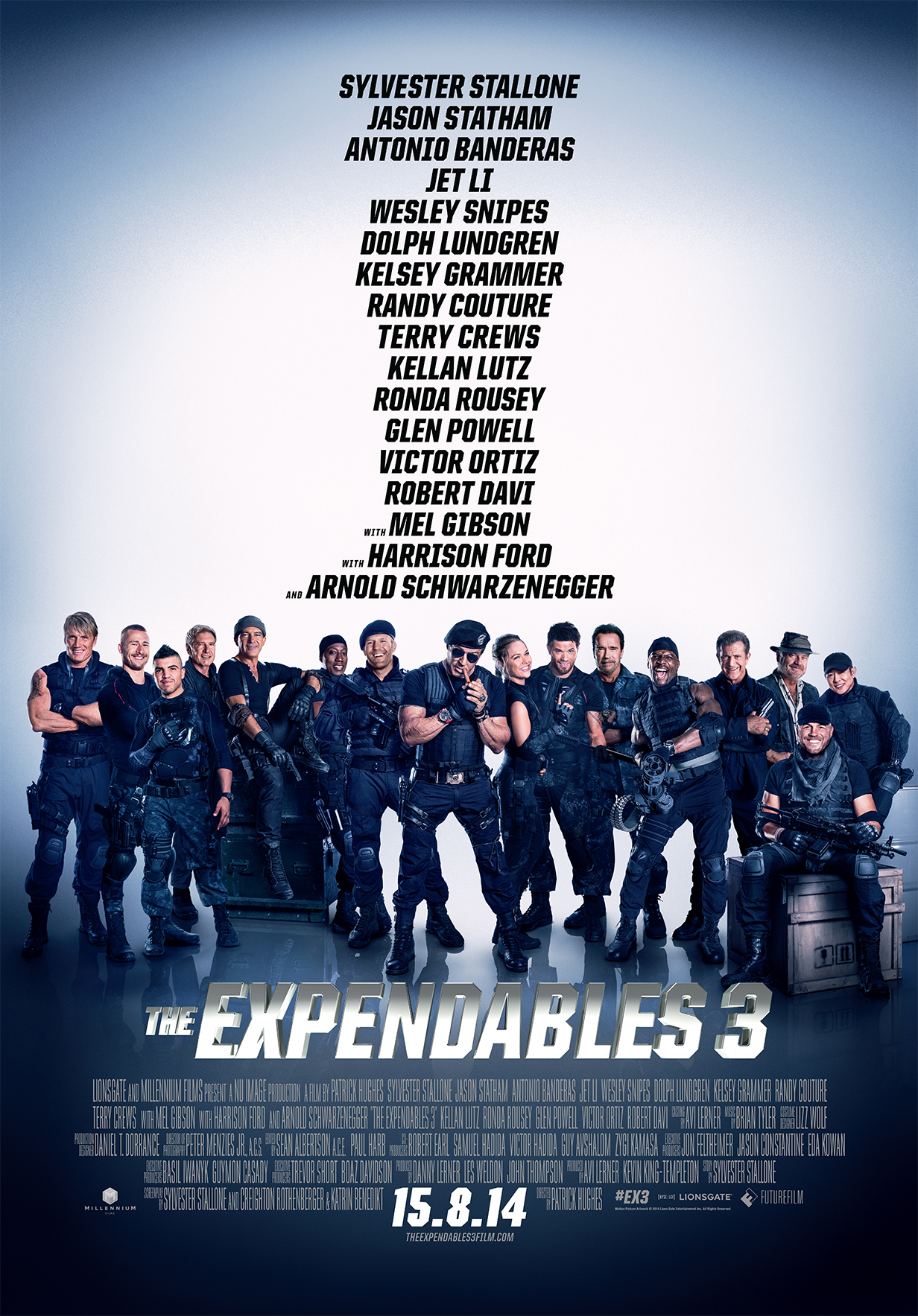- NäyttelijätSylvester Stallone, Jason Statham, Jet Li, Antonio Banderas, Wesley Snipes, Dolph Lundgren, Mel Gibson, Harrison Ford, Arnold Schwarzenegger, Kelsey Grammer, Ronda Rousey